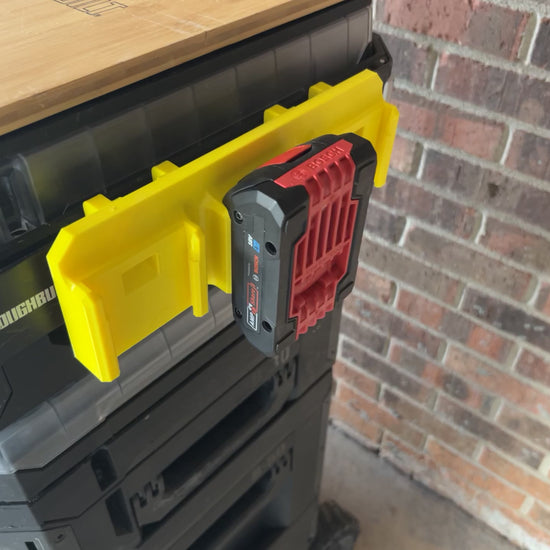 The Bosch 18V Battery Clip-On Rail is a versatile storage solution designed for efficiency and durability. Constructed from high-quality PETG with robust ABS clips, it securely holds up to three Bosch 18V batteries. The mount easily attaches and detaches from the ToughBuilt StackTech rail system, offering convenient and accessible battery storage. Keep your workspace organized and your batteries ready for action with this reliable clip-on rail.