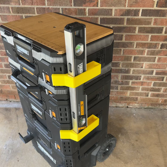 Introducing the Dual-Level Beam Holder! This versatile two-piece set is designed to clip seamlessly onto the side of the ToughBuilt StackTech system. With both large and small sizes available, you can choose the perfect fit for your needs. The main body is crafted from durable ABS, while the clip is made from robust carbon fiber reinforced nylon, ensuring a secure hold every time. Upgrade your workflow with the Dual-Level Beam Holder today!