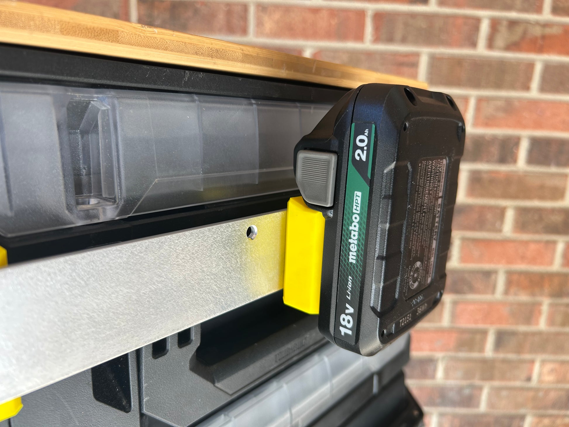 Perfect for workshops, vans, and mobile setups, this mount provides a convenient and reliable way to store and access your Matabo 18v batteries while working with your StackTech system.